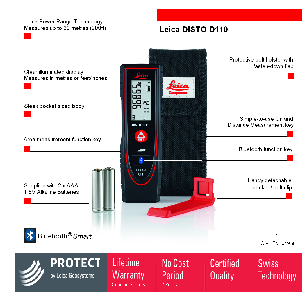Leica DISTO™ D110 – the world’s smallest hand held laser distance meter with integrated Bluetooth® Smart technology.